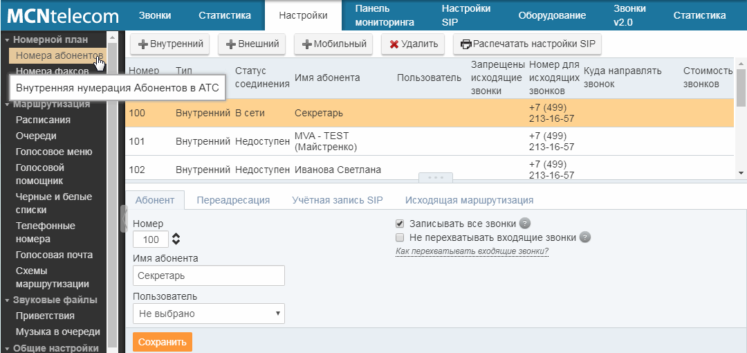 Функция Виртуальной АТС, которая позволяет записывать звонки внутренних, внешних и мобильных абонентов.